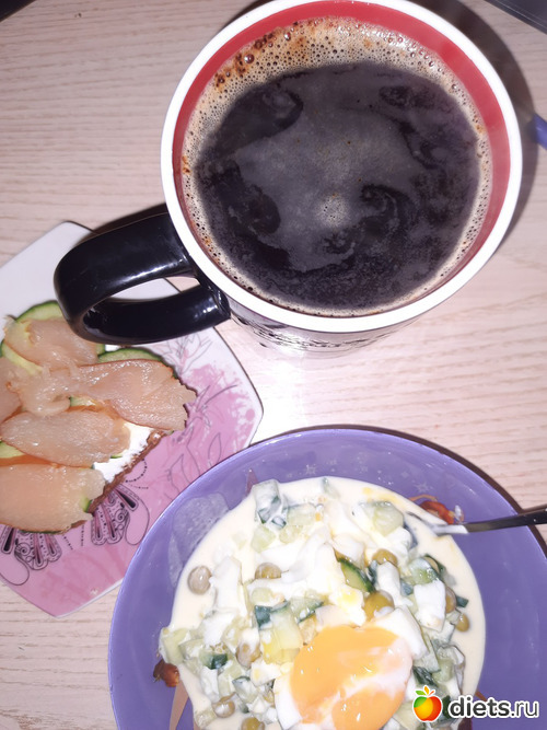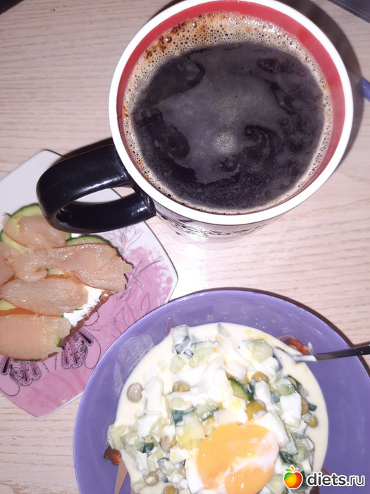 На завтрак ела салат и бутер с творожным сыром и карпаччо