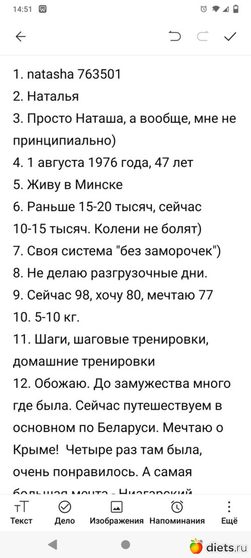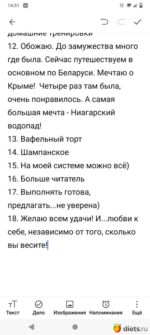 12. Любите ли вы природу и активный отдых так, как люблю ее я? - Да. Какие места планирую посетить в этом году? Мечтаю съездить в Беларусь и на море.
