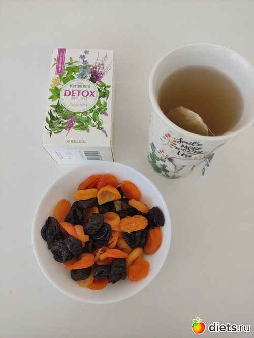 Салат и то правда с хлебушком и чай с сухофруктами ( съела треть)