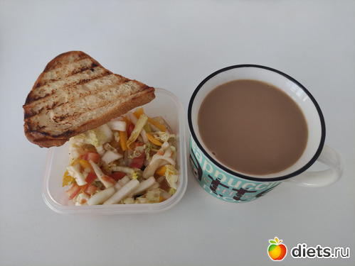 Салат и то правда с хлебушком и чай с сухофруктами ( съела треть)