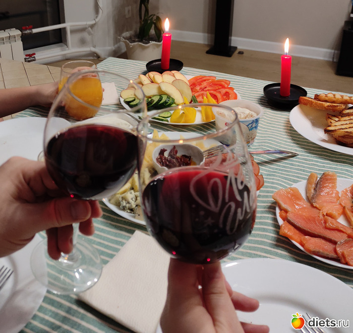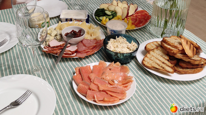 А вот на ужин мы устроили фуршет с вином, сырно-мясной и овощной тарелкой, слабосоленой сёмгой и форелью, ещё был хумус, намазка из копчёного сыра с чесноком и намазка из криля, творожный сыр, жареный хлебушек, вяленые томаты) одним словом пир горой) выпила 2 больших бокала красного сухого вина и всего поела) если бывает гастрономический оргазм, то это был он)