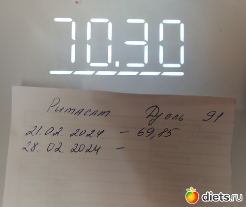 А у меня КД. Как то не хочется на весы вставать. Думаю лучше в четверг взвешусь. Пока живот надут, там ничего приятного не увижу