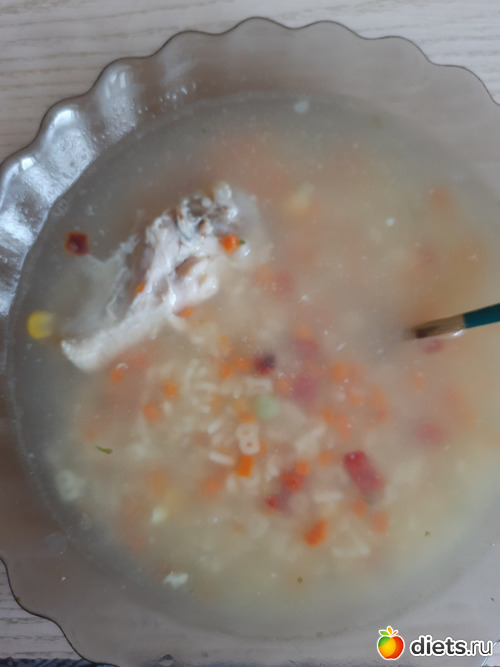 На обед суп куриный, с лапшой, без всяких зажарок, бледно, но вкусно