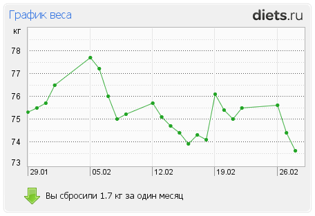 Хочется стабильные 73, хочется вылезти из этого порочного круга гуляющих 2-3 кг. И худеть дальше - до желаемых 67.