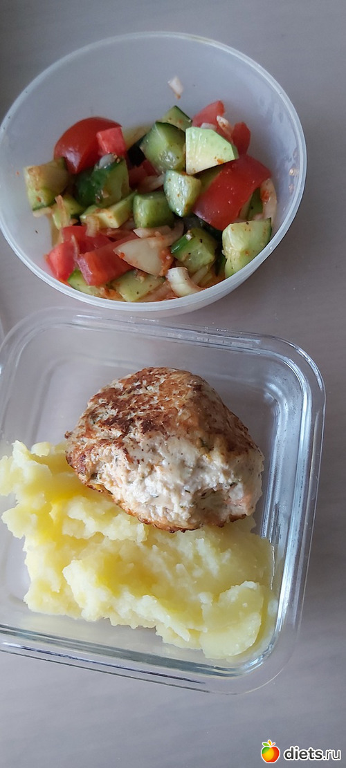 Салат из овощей и авокадо, с капелькой оливкового масла и картошка с котлеткой. После обеда всегда хочется поспать. но увы... В 15.00 пудинг
