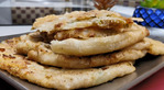 Смазываем верхнюю часть лепешки маслом со сковороды.