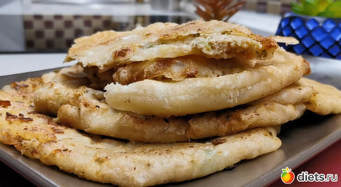 Запах во время жарки стоит изумительный. Хочется съесть всё и сразу. Но на самом деле эти китайские лепешки на удивление сытные. И одной вполне хватает, чтобы поужинать, например, со свежим салатом или плотно перекусить.