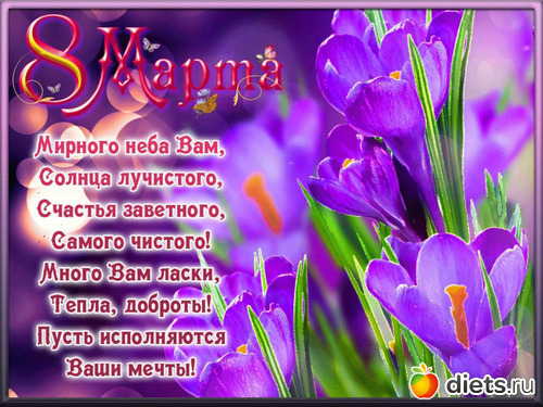С Праздничком девочки с весной, с 8 марта. Пусть все ваши мечты сбываются.