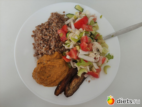 Обед (хотела сделать овощную шаурму, но обед подкрался, а лаваша нет, поэтому гречка)