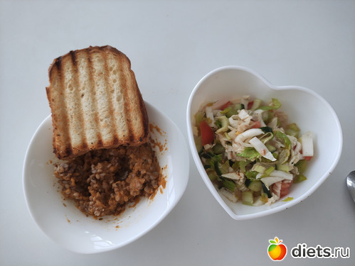 Ужин (сладкого не хотелось. Ещё положен шоколад по диете, но мой горький съели домашние, обычно никто кроме меня такой не ест. А этот оказался не горьким, а скорее сладким и быстро закончился. Брала Коммунарку, первый раз и видимо последний. Надо купить какой-то вкусный горький или хотя бы темный шоколад, давно не ела именно вкусного)