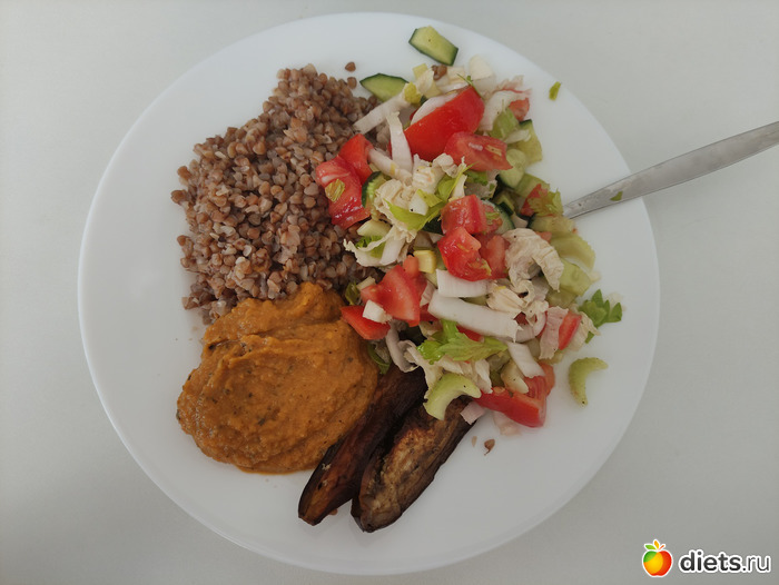 Обед (хотела сделать овощную шаурму, но обед подкрался, а лаваша нет, поэтому гречка)