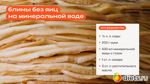 Очень тонкие, деликатные, готовятся вообще без животного жира и поэтому подходят на угощение веганам. Правда, такие блинчики сложнее в приготовлении, чем дрожжевые или на кефире: приготовьте достаточно масла, чтобы часто смазывать сковороду.