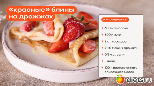 Красные — не потому что с красителем, а просто красивые. Чехов писал, что на вид дрожжевые блины напоминают плечо купеческой дочери.