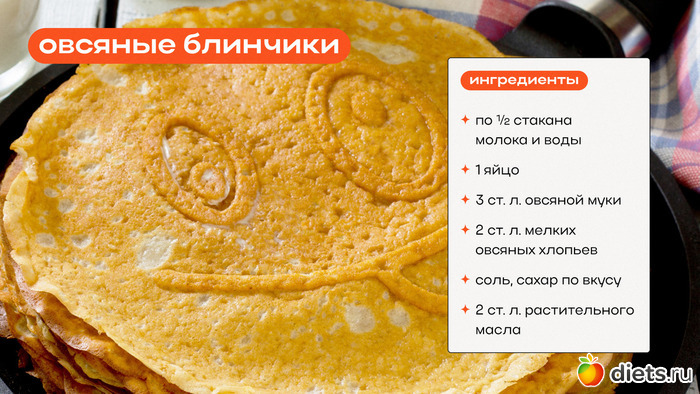 Обратите внимание, из такого количества продуктов получится примерно 4 блинчика, то есть порция на один завтрак. Выпекать их нужно на новой сковороде, чтобы не было искушения подливать масла.