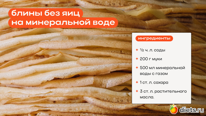 Очень тонкие, деликатные, готовятся вообще без животного жира и поэтому подходят на угощение веганам. Правда, такие блинчики сложнее в приготовлении, чем дрожжевые или на кефире: приготовьте достаточно масла, чтобы часто смазывать сковороду.