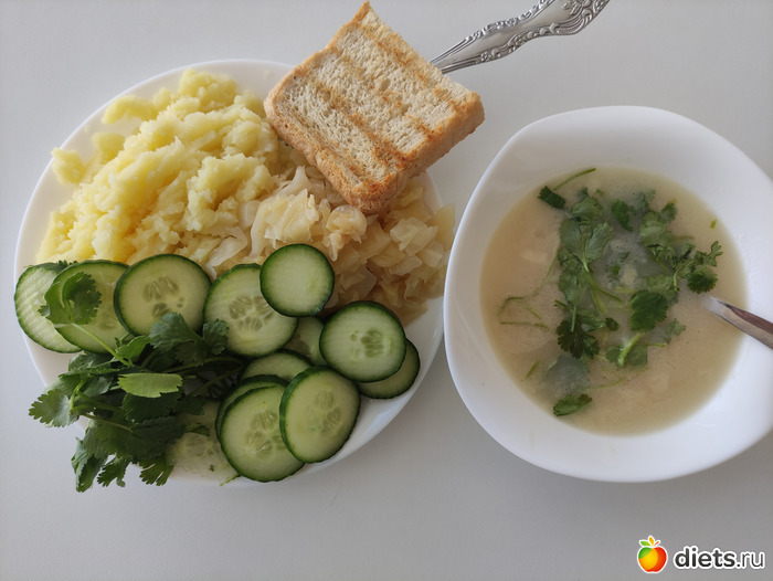 Обед. Тушила капусту, много сока была, вычерпать, оказался вкусный бульон. А я то думала откуда в диете на обед можно овощные бульоны и где их брать