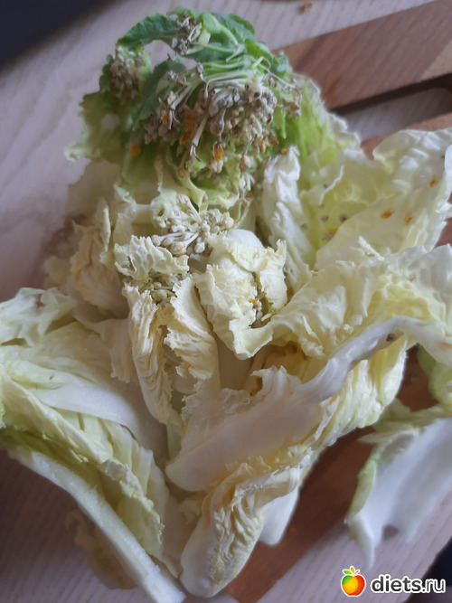 А еще я когда начала капусту резать, оказалось внутри она цвести собралась... Ни разу такого не встречала... Вот интересно, она так напичкана хз знает чем, или она акселерат