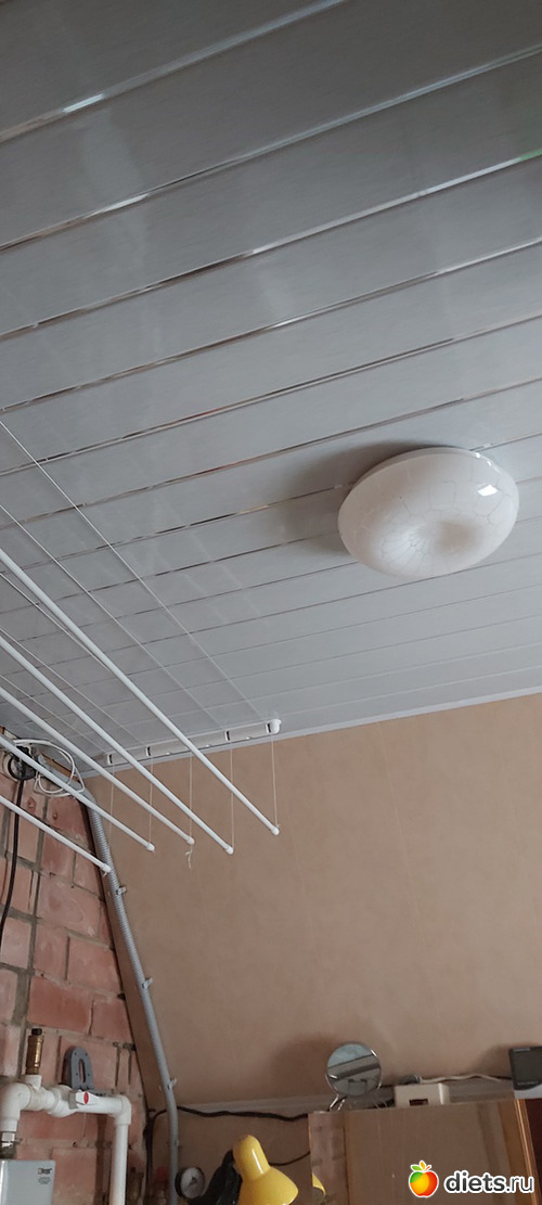 Про потолок из фанеры: вполне возможно он и смотрится хорошо, просто на фото с ванны с новым стало мне нравится больше))