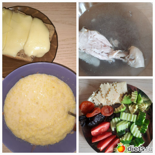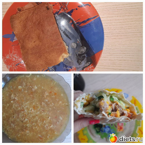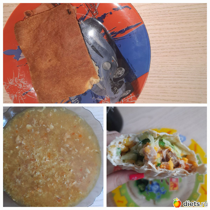 В пятницу я ела утром кашу пшеную и бутер, весь не съела, поделилась с сыном, на обед бульон и курица, на ужин просто овощи, не хотела ничего, -заставила просто себя