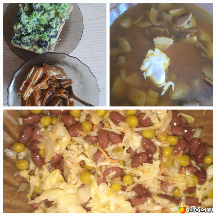 Сегодня ела на завтрак спаржу и бутер с авокадо, на обед суп доела, а! я ж майонез постный сделала, на пробу, вкусненько, буду в салатики иногда добавлять. На ужин отварила фасоль и сделала ленивый винегрет