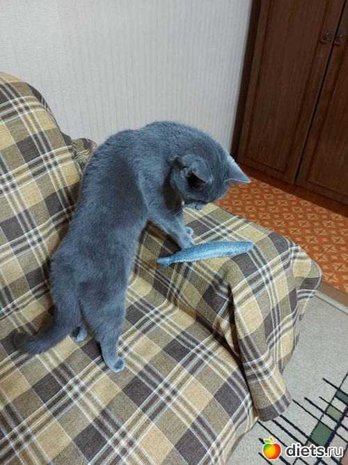 Любимая игрушка у нее вот эта рыбка. Она с травкой внутри, поэтому и любимая...