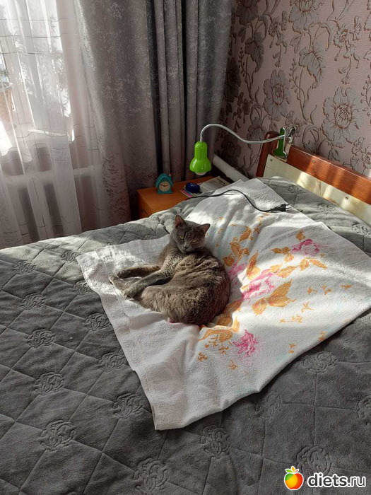 Полотенце лежит специально на том месте, где ее высочество предпочитают отдыхать