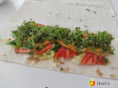 Какая шава красивая!! А что там в начинке? Вижу микрозелень, помидорку, огурец и капусту/салат, а еще что?