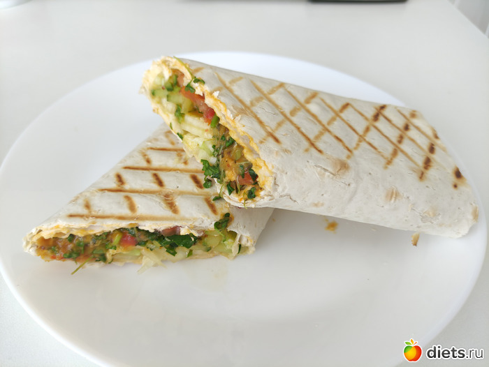 На обед наконец-то я сделала шаурму, конечно она вегетарианская... Но большая и вкусная