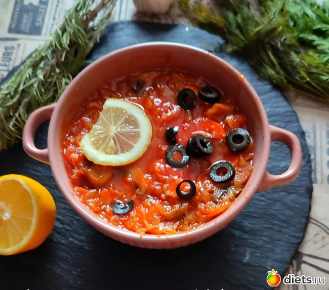 ... Варите еще 5–7 минут. Подавайте с оливками и долькой лимона. Приятной трапезы!