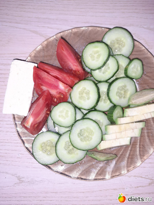 На ужин есть не хотела, заставила себя овощи поесть и тофу отрезала.