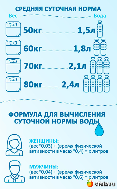 С водой информации разная, на какой вес на текущий или тот который в норме