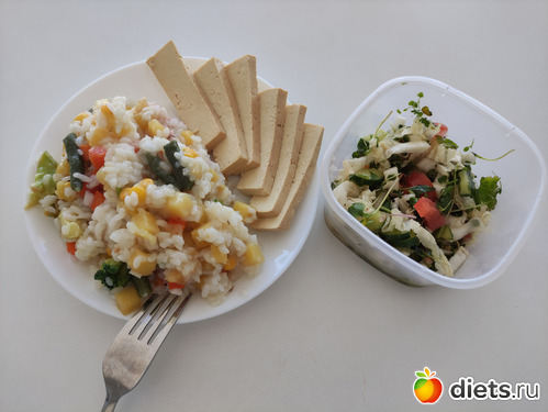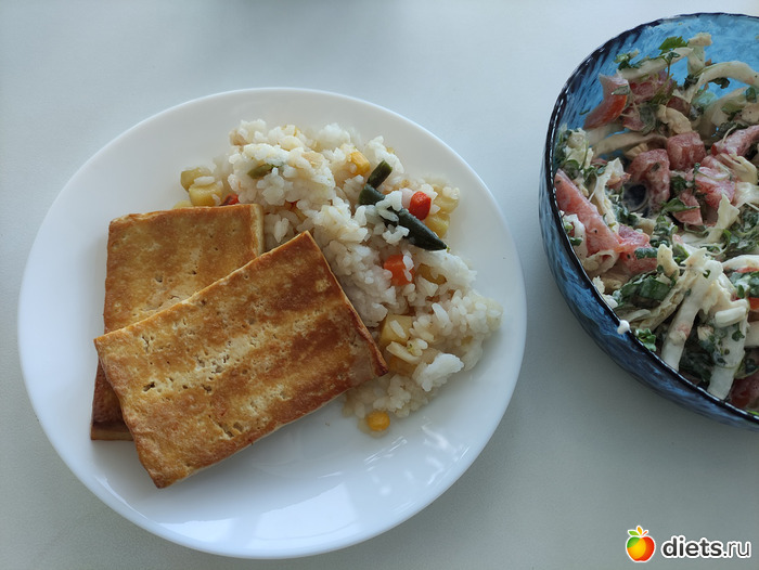 Мне напомнил по консистенции и по вкусу адыгейский. Тофу был подкопченный, боялась что будет много соли, но нет нормально. На обед просто порезала как белковую добавку к рису с овощами, на ужин поджарила. Не жареный как то больше понравился, может потому что подкопченный не стоило жарить, но на упаковке было написано что можно.