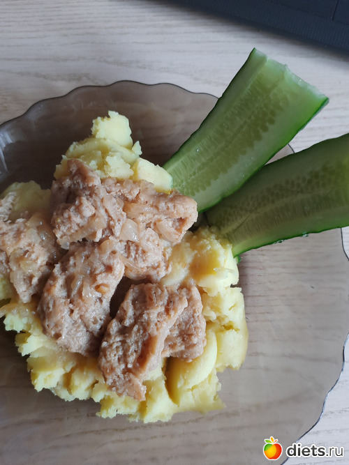 На обедужин была пюрешка с соевым мясом, вкусно