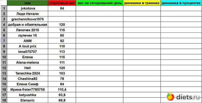 Тоже хочется.Запишите и меня.Вислова1956 вес 107,300 на сегодня.Завтра день рождение у подружки,а с 5 опять худеть.