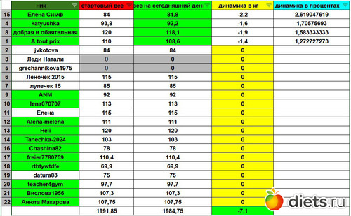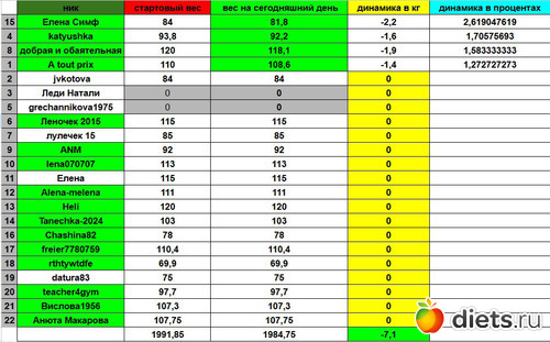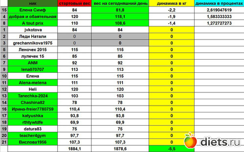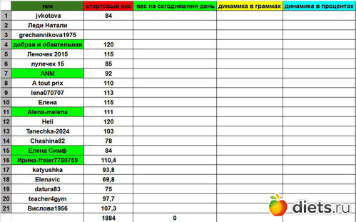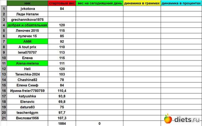Я буду вносить лучший результат дня, так что это могут быть цифры как утром так и вечером. Сегодня три человека уже прислали свои показатели днем )