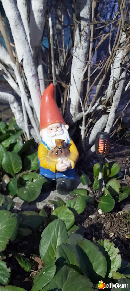 Добрый вечер. Вчера переехали на дачу. Грузились часа два. Пока я собрала вещи. Но самое главное было довезти рассаду. Все в ящики аккуратно ставила. Но все таки при разгрузке на даче уронила коробку с шестью перцами. Но не расстроилась, я с запасом сажала. Но вчера некогда было ее расставить на столе. Пока быстро приготовила ужин, пока дом потопили, пока полы помыла. Устала. Сегодня проснулась в полседьмого. И первое что сделала с утра, так это повесила лампы для рассады. Все расставила, полила. Потом муж проснулся, позавтракали и пошли наводить порядки на участке. В начале сезона я первым делом ставлю нашего гнома под бульденеж.