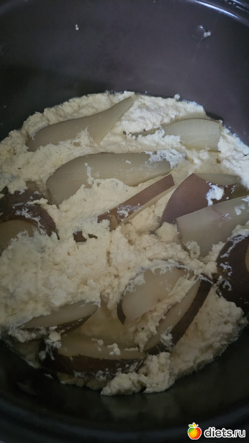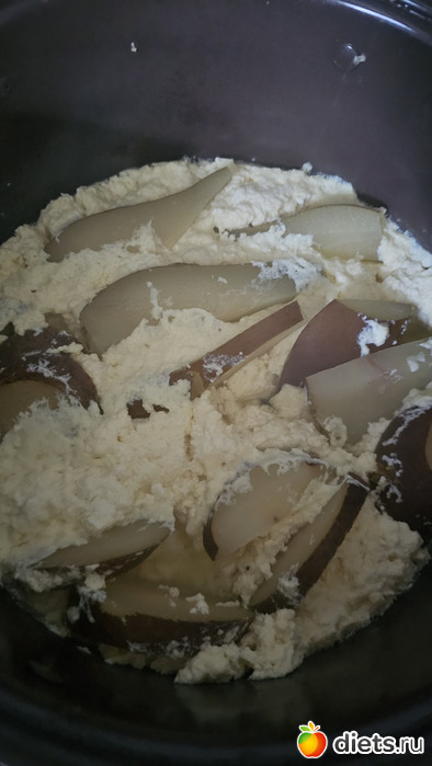 творожная запеканка с грушей. По рецепту с персиком, но персики сейчас по цене крыла самолета