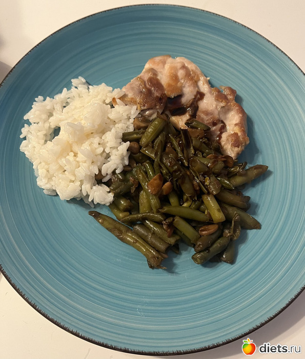 Стручковая фасоль с грибами заправленная крем-бальзамом.