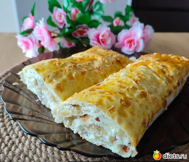 Diets.ru Ленивый рулет из лаваша с творогом и бананом без сахара