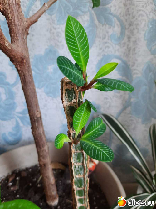 *чуть поухаживала за другими комнатными цветами (думаю, отделять ли молочай беложилковый от фикуса? такой умничка, голая бесперспективная палка дала три ростка!)