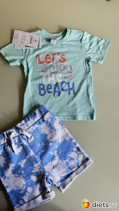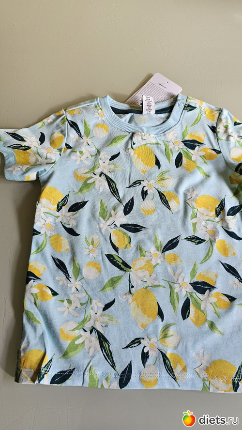 К лету докупили несколько новых топов. Простая футболка с минимальным принтом. Заказ был вообще на черные и белые футболки без принта, но пока ищем, согласился и на такую