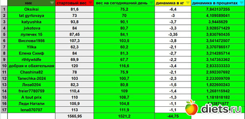 Итог нашего марафона - 44,75 кг!