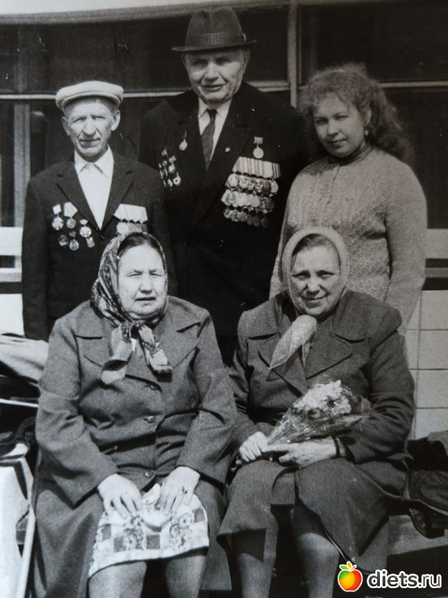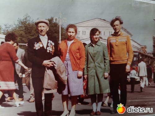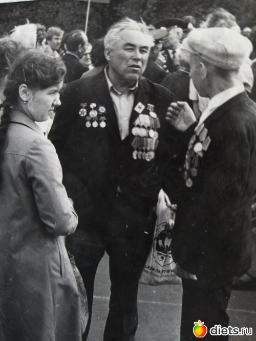 И вот я, мама, Вовка и дед ходим по этому парку, народищу, кто поет под гармошку, кто танцует. А мы ищем группу с табличкой 2 украинский фронт, какая-то бригада. Номер не помню. И не нашли никого из дедушкиных фронтовиков. Дед расстроился. Но тут Вовка говорит-а теперь идем в ресторан. А, еще забыла, мы когда по парку гуляли, то к дедуле периодически подбегали пионеры и дарили по тюльпану. А дед стеснялся, говорил да не надо, и у самого слезы проступали. И вот подходим мы к ресторану, а там толпа и не пропускают, швейцар говорит нет мест. Увидел дедулю, а он при орденах и медалях, распахнул перед нами дверь и пригласил в зал. Так я в первый раз в 12 лет попала в советский ресторан. Но когда еще и гардеробщик не позволил мне самой снять плащ, аккуратно придерживал его, я обалдела. А при уходе вежливо держал и ждал когда я засуну руки в рукава. Мне было непривычно. Но яркие впечатления остались от того посещения ресторана. И погода была очень теплая, хоть я и была в плаще.
