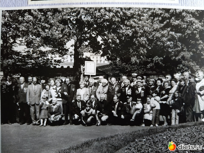 И вот я, мама, Вовка и дед ходим по этому парку, народищу, кто поет под гармошку, кто танцует. А мы ищем группу с табличкой 2 украинский фронт, какая-то бригада. Номер не помню. И не нашли никого из дедушкиных фронтовиков. Дед расстроился. Но тут Вовка говорит-а теперь идем в ресторан. А, еще забыла, мы когда по парку гуляли, то к дедуле периодически подбегали пионеры и дарили по тюльпану. А дед стеснялся, говорил да не надо, и у самого слезы проступали. И вот подходим мы к ресторану, а там толпа и не пропускают, швейцар говорит нет мест. Увидел дедулю, а он при орденах и медалях, распахнул перед нами дверь и пригласил в зал. Так я в первый раз в 12 лет попала в советский ресторан. Но когда еще и гардеробщик не позволил мне самой снять плащ, аккуратно придерживал его, я обалдела. А при уходе вежливо держал и ждал когда я засуну руки в рукава. Мне было непривычно. Но яркие впечатления остались от того посещения ресторана. И погода была очень теплая, хоть я и была в плаще.