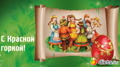 Распространенной забавой на Красную горку было катание крашеных яиц. Молодые люди поднимались на горки и скатывали пасхальное угощение вниз — у кого дальше укатится, тот весь год будет самым здоровым и удачливым.
