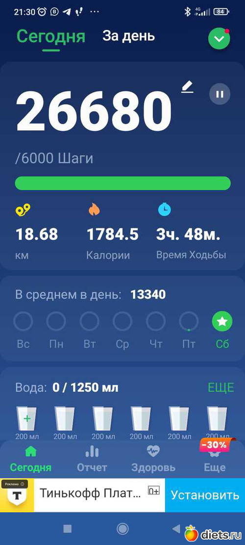 Я установила, наконец, шагомер) И даже с моим больным голеностопом весьма недурной по шагам первый выходной после его установки получился)