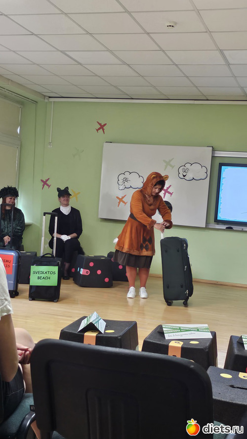 В садике директор и воспитательницы разыграли сценку, типо дирехторша - пилот самолета, воспитательницы - стюардессы
