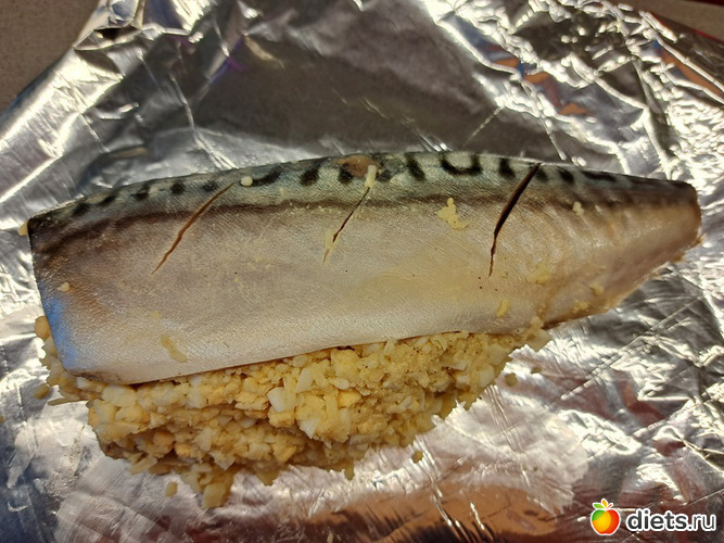 Скумбрия, фаршированная яйцом и сыром в фольге