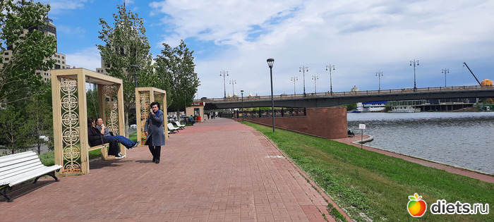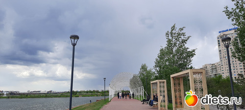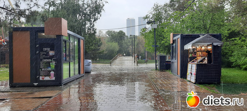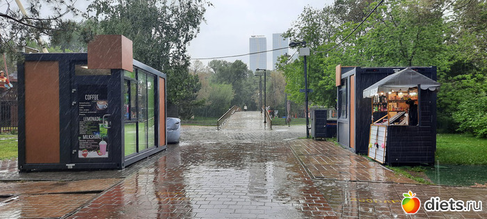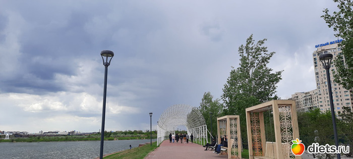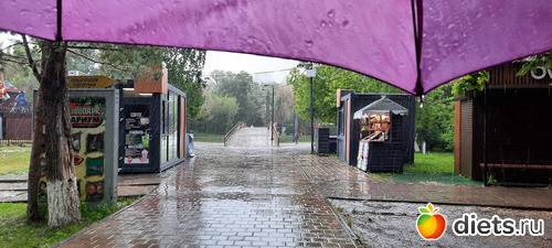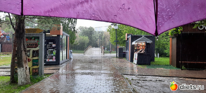 Ли хорошо спасала куртка. Не торопясь, под дождём, наслаждаясь им, мы дошли до кафе и уже там приземлились посидеть, поболтать, откушать вкусняшки. Я заказала окрошку и шашлык, Ли-жаренный лагман и какой-то удивительно вкусный салат, пили чай из ягод. Окрошка была вкуснючая, шашлык уже был лишним, я кое-как съела 3 куска, два домой мужу привезла. Потом снова пошли гулять, улицы просто благоухали маем, дождём, травами, цветами и даже вроде как окацией. Воздух такой свежий! Ни холодно, ни жарко, получили огромный кайф и от общения и от прогулки, насмеялись, навспоминались своих первых любовей. Просто это мой любимый парк и там случился мой первый поцелуй))) Потом разъехались по домам на такси. В общей сложности я нагуляла почти 10к шагов. умница, да и только.