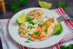 Мне кажется, стейки проще всего готовить из куриной грудки. Нежное мясо не требует длительной термообработки и каких-то особенных специй. Единственный момент — не передерживайте птицу на сковородке, иначе она станет слишком сухой.